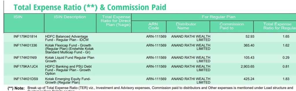 a. The amount of actual commission paid by AMCs/Mutual Funds (MFs) to distributors (in absolute terms) during the half-year period against the concerned investor’s total investments in each MF scheme. The term ‘commission’ here refers to all direct monetary payments and other payments made in the form of gifts / rewards, trips, event sponsorships etc. by AMCs/MFs to distributors.